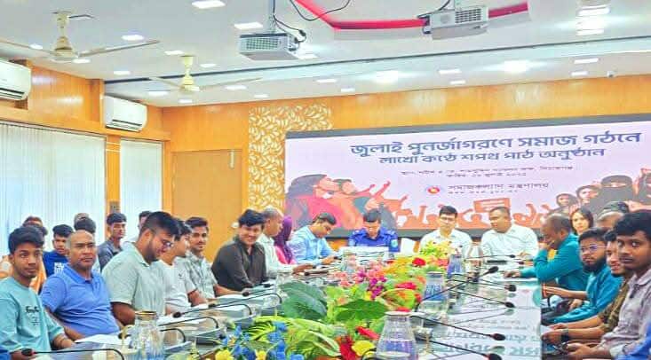 ‘জুলাই পুনর্জাগরণে সমাজগঠনে লাখো কণ্ঠে শপথ’ কর্মসূচির অংশ হিসেবে সিরাজগঞ্জে অনুষ্ঠিত হয়েছে আলোচনা সভা, উপকারভোগীদের মধ্যে কার্ড বিতরণ এবং বর্ণিল সাংস্কৃতিক অনুষ্ঠান। শনিবার (২৬ জুলাই) সকালে সিরাজগঞ্জ কালেক্টরেট ভবনের শহীদ